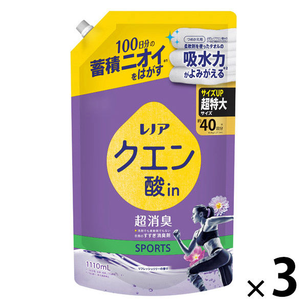 レノア クエン酸in(クエン酸イン) 超消臭 SPORTS リフレッシュリリー 詰め替え 超特大 1110mL 1セット(1個×3) すすぎ消臭剤 P&G