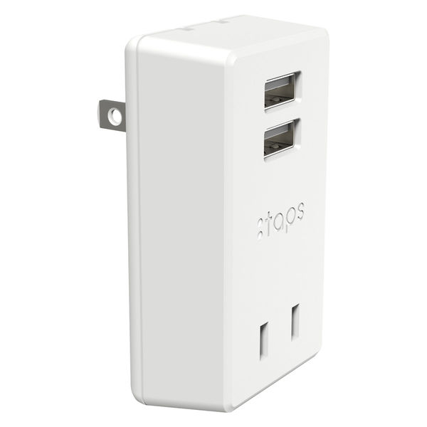 | 商品の特徴 | USB充電ポート付きのコンセントタップ(OAタップ)。ACコンセント2個口(合計1400W)、USBーAポート2個口(最大出力2.4A)。コンセントを使いながらスマホや携帯電話を充電できる。オートパワーシステム搭載で、接続された機器を自動判別し、その機器に合わせた最適充電が可能。90度回転する収納式プラグ採用。軽量&コンパクトで使いやすい。トラッキング防止プラグ採用で、プラグの根元にホコリが付着するのを防ぐ。SIAAマーク取得の抗菌加工仕様。 | ||