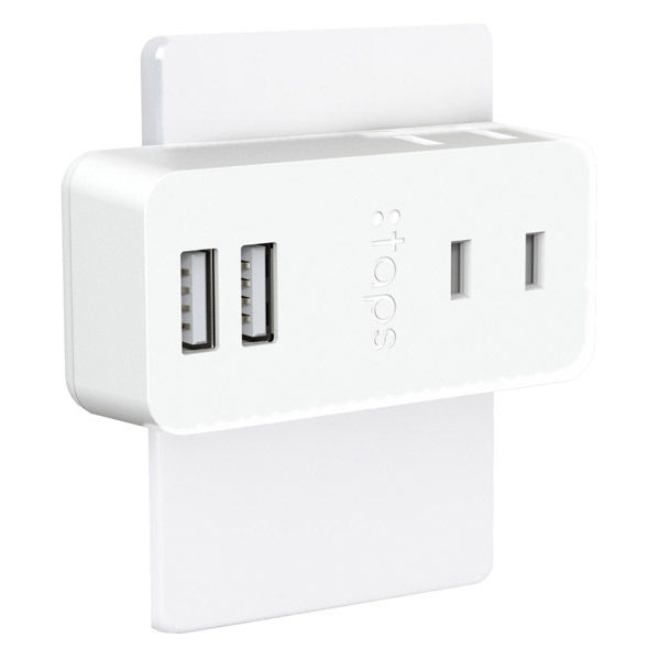 | 商品の特徴 | USB充電ポート付きのコンセントタップ(OAタップ)。ACコンセント2個口(合計1400W)、USBーAポート2個口(最大出力2A)。コンセントを使いながらスマホや携帯電話を充電できる。180度回転する収納式プラグ採用。軽量&コンパクトで使いやすく、持ち運びにも便利。トラッキング防止プラグ採用で、プラグの根元にホコリが付着するのを防ぐ。SIAAマーク取得の抗菌加工仕様。 | ||