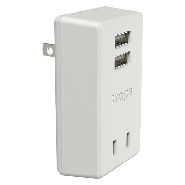 | 商品の特徴 | USB充電ポート付きのコンセントタップ(OAタップ)。ACコンセント2個口(合計1400W)、USBーAポート2個口(最大出力2.4A)。コンセントを使いながらスマホや携帯電話を充電できる。オートパワーシステム搭載で、接続された機器を自動判別し、その機器に合わせた最適充電が可能。90度回転する収納式プラグ採用。軽量&コンパクトで使いやすい。トラッキング防止プラグ採用で、プラグの根元にホコリが付着するのを防ぐ。雷ガード搭載で、落雷時に接続している機器のダメージを軽減。SIAAマーク取得の抗菌加工仕様。 | ||