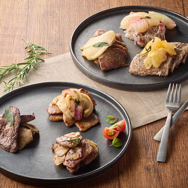 | 内容量 | 黒毛和牛肩ロースにんにく114g、黒毛和牛モモ生姜104g、黒毛和牛バラ玉ねぎ124g | ||