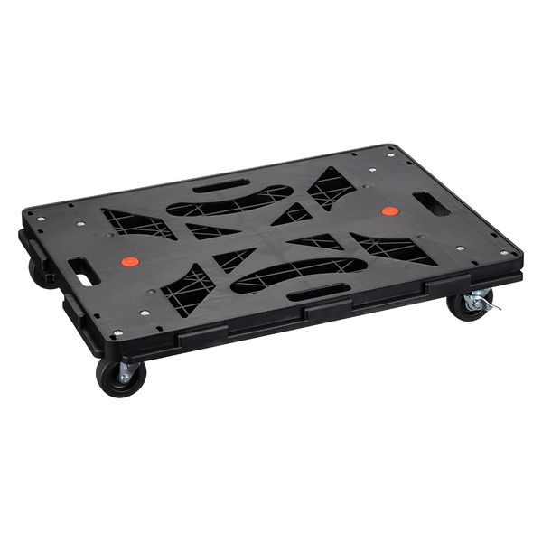 アスクルオリジナルの連結可能な平台車。700×500mmの大きな積載面で、運搬効率アップ。4枚連結すれば1200×1200mmのパレット台車に。