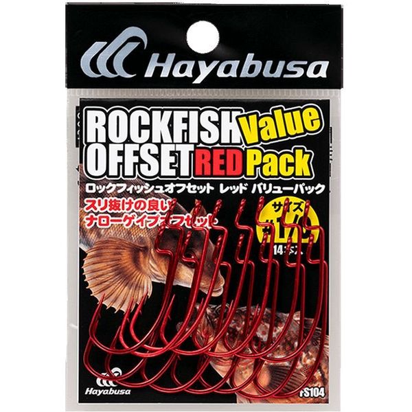 ハヤブサ FS104-1/0 ロックフィッシュオフセットレッド バリュー 1袋(直送品)
