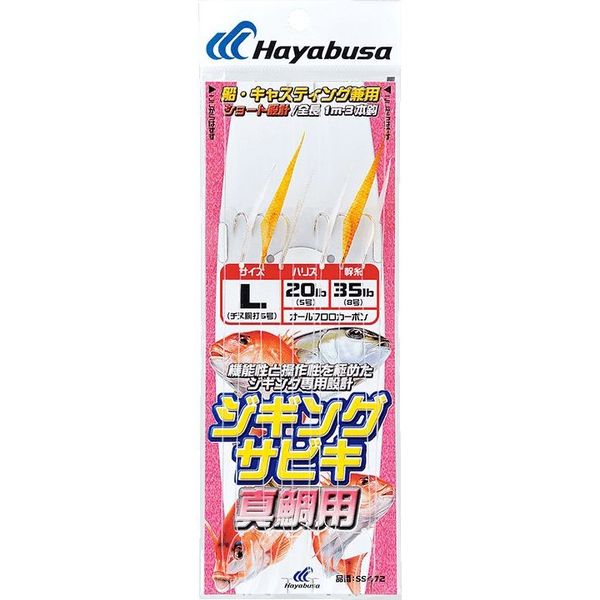 | 商品の特徴 | ジギングロッドで扱いやすいショート設計の真鯛用ジギングサビキ。枝ハリス、幹糸全てフロロカーボンを採用。不意の本命にも対応するメインライン設計。安心の強度を誇るパワースイベル&エイトロックスナップ。また、セットするルアーはメタルジグだけでなく、鯛ラバ、インチクなど、何でもOK! | ||