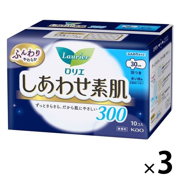 【生理用品】 ロリエエフ しあわせ素肌 多い夜用 羽つき 30cm 10個入×3個 花王