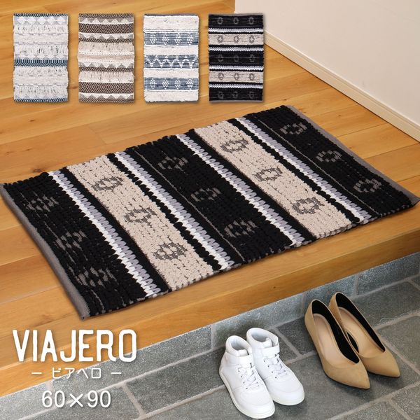 本商品:萩原 インド綿ラグ・マット VIAJERO(ビアヘロ) ウルド 600×900mm ブラック 270074800 1枚