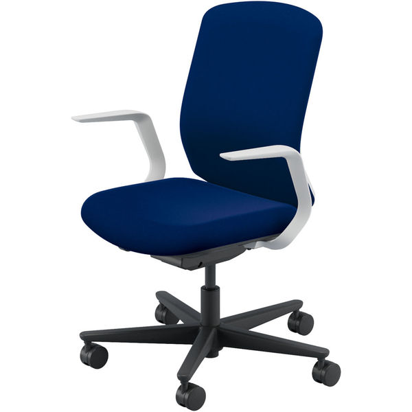 【組立設置込】内田洋行 カリッサ2 L型肘 クロス ナイロンキャスター ホワイトシェル ダークブルー 1脚(直送品)