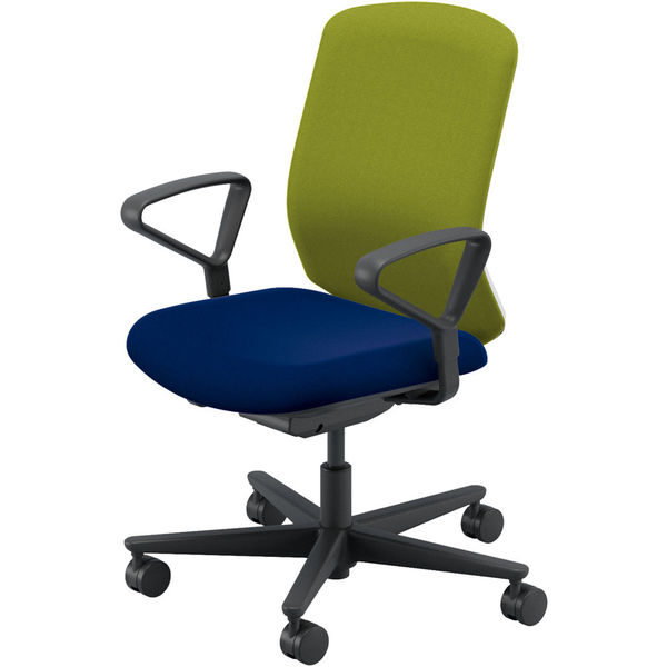 【組立設置込】内田洋行 カリッサ2 リング肘 クロス ナイロンキャスター ホワイトシェル Dブルー×リーフグリーン 1脚(直送品)