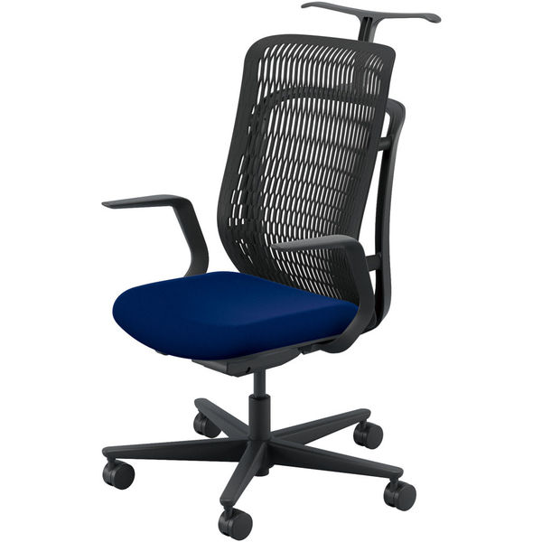 【組立設置込】内田洋行 AJチェア ヘッドレスト無 ハンガー付 固定肘 ウレタンキャスター ブラック×ダークブルー 1脚(直送品)