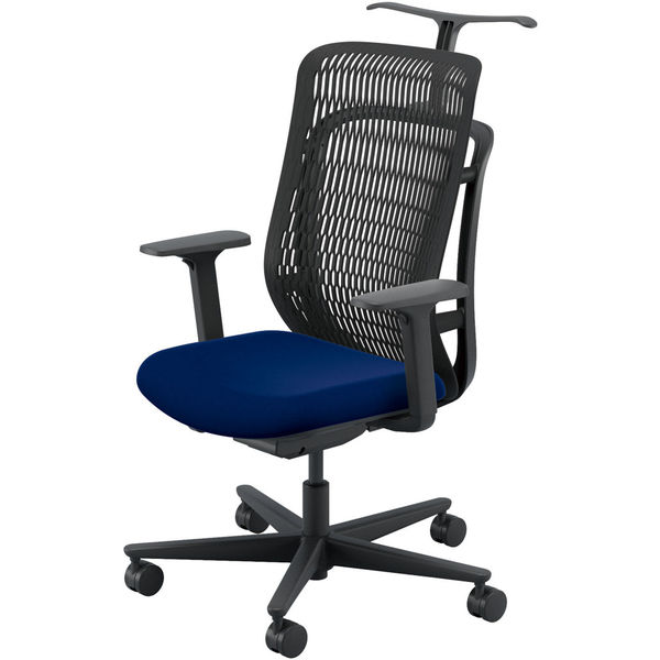 【組立設置込】内田洋行 AJチェア ヘッドレスト無 ハンガー付 可動肘 ウレタンキャスター ブラック×ダークブルー 1脚(直送品)