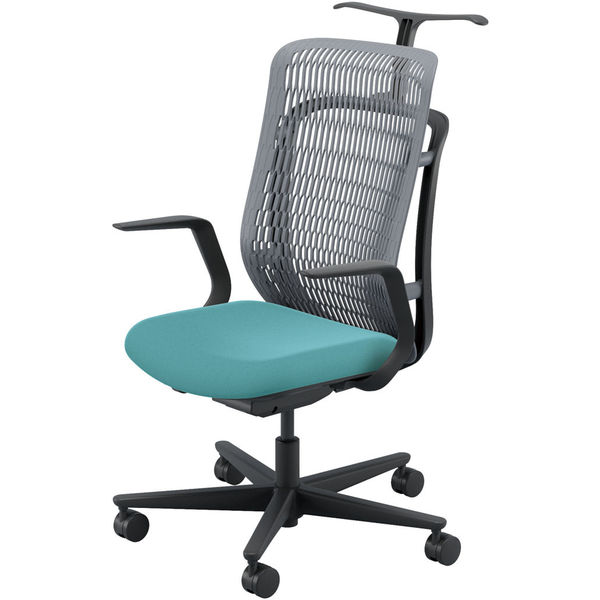 【組立設置込】内田洋行 AJチェア ヘッドレスト無 ハンガー付 固定肘 ウレタンキャスター Sグレー×アクアブルー 1脚(直送品)