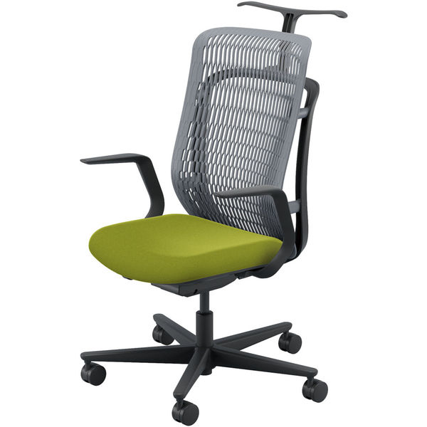 【組立設置込】内田洋行 AJチェア ヘッドレスト無 ハンガー付 固定肘 ウレタンキャスター Sグレー×リーフグリーン 1脚(直送品)