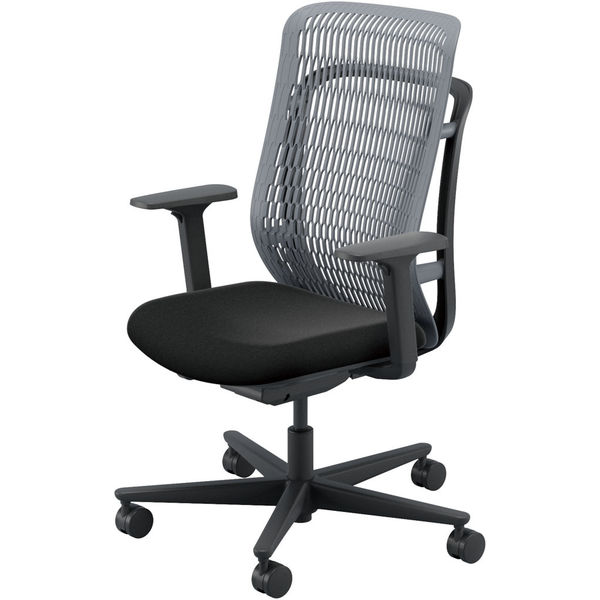 【組立設置込】内田洋行 AJチェア ヘッドレスト無 ハンガー無 可動肘 ナイロンキャスター Sグレー×ブラック 1脚(直送品)