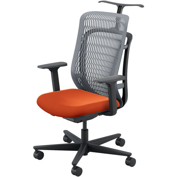 【組立設置込】内田洋行 AJチェア ヘッドレスト無 ハンガー付 可動肘 ウレタンキャスター Sグレー×テラコッタ 1脚(直送品)