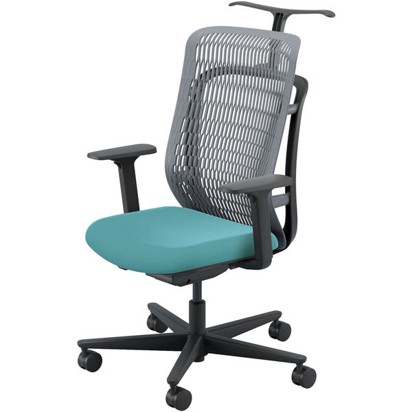 【組立設置込】内田洋行 AJチェア ヘッドレスト無 ハンガー付 可動肘 ウレタンキャスター Sグレー×アクアブルー 1脚(直送品)