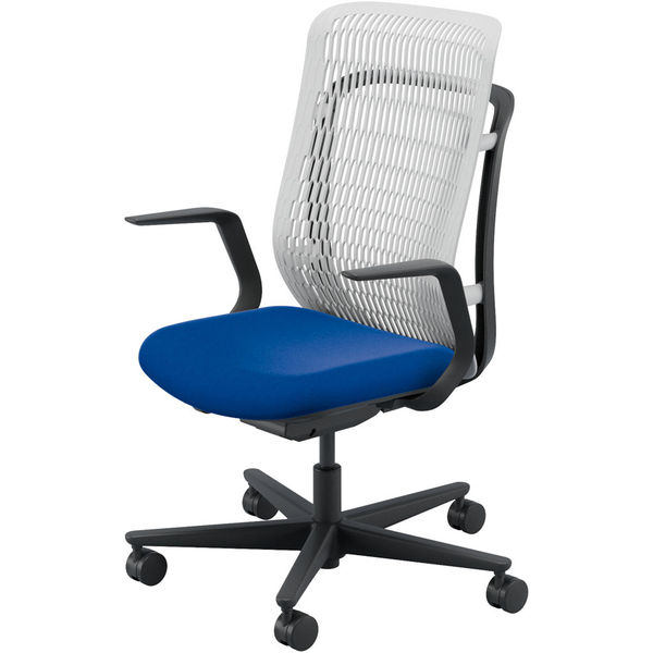 【組立設置込】内田洋行 AJチェア ヘッドレスト無 ハンガー無 固定肘 ナイロンキャスター Aグレー×ブルー 1脚(直送品)