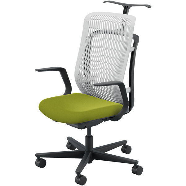 【組立設置込】内田洋行 AJチェア ヘッドレスト無 ハンガー付 固定肘 ナイロンキャスター Aグレー×リーフグリーン 1脚(直送品)