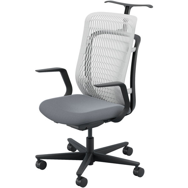 【組立設置込】内田洋行 AJチェア ヘッドレスト無 ハンガー付 固定肘 ウレタンキャスター Aグレー×ライトグレー 1脚(直送品)