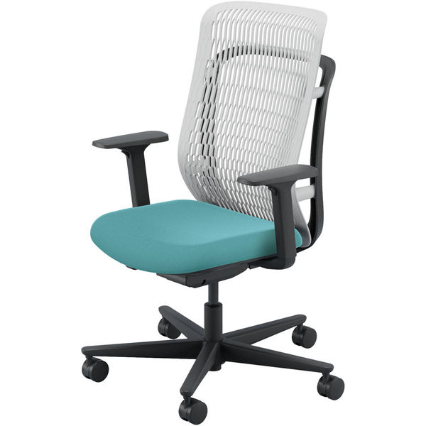【組立設置込】内田洋行 AJチェア ヘッドレスト無 ハンガー無 可動肘 ナイロンキャスター Aグレー×アクアブルー 1脚(直送品)