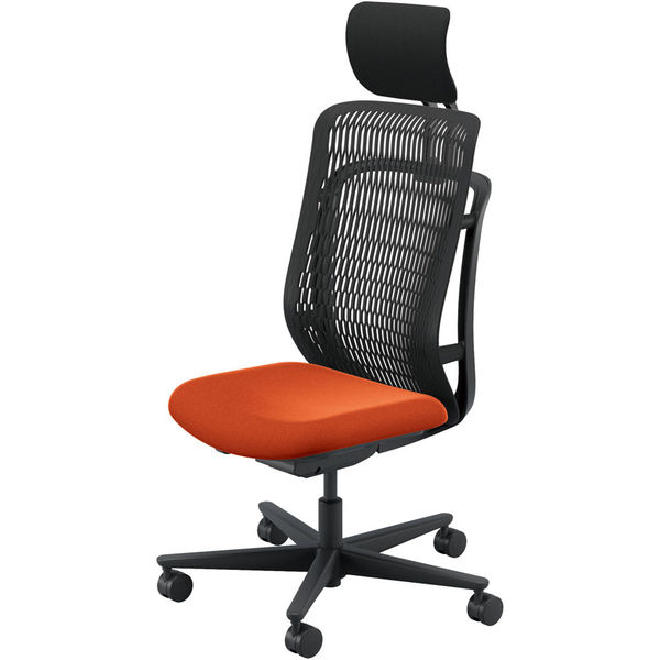 【組立設置込】内田洋行 AJチェア ヘッドレスト付 ハンガー無 肘無し ウレタンキャスター ブラック×テラコッタ 53725033 1脚(直送品)