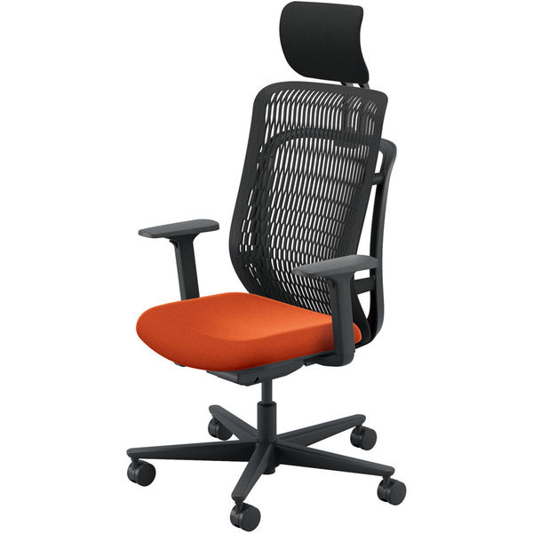 【組立設置込】内田洋行 AJチェア ヘッドレスト付 ハンガー無 可動肘 ナイロンキャスター ブラック×テラコッタ 53725313 1脚(直送品)