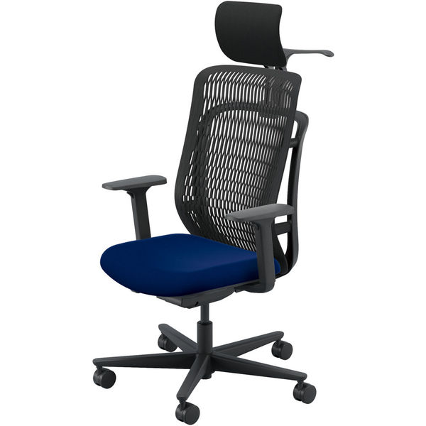 【組立設置込】内田洋行 AJチェア ヘッドレスト付 ハンガー付 可動肘 ウレタンキャスター ブラック×ダークブルー 53725345 1脚(直送品)