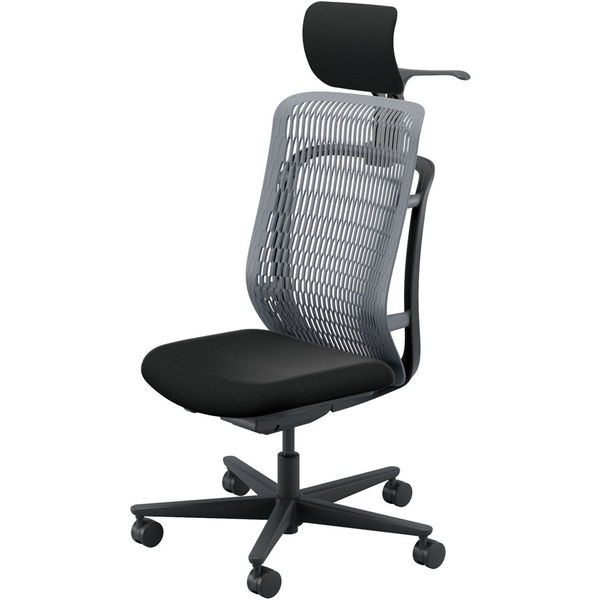 【組立設置込】内田洋行 AJチェア ヘッドレスト付 ハンガー付 肘無し ウレタンキャスター Sグレー×ブラック 53726040 1脚(直送品)