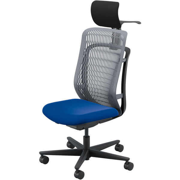 【組立設置込】内田洋行 AJチェア ヘッドレスト付 ハンガー付 肘無し ウレタンキャスター Sグレー×ブルー 53726044 1脚(直送品)