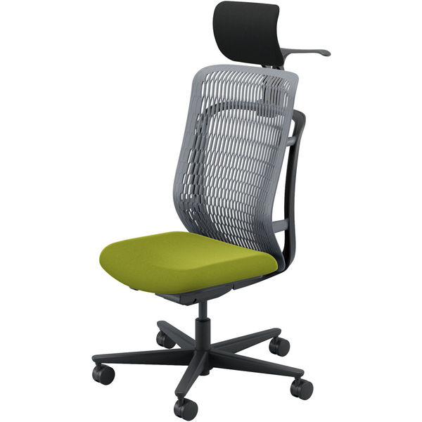【組立設置込】内田洋行 AJチェア ヘッドレスト付 ハンガー付 肘無し ウレタンキャスター Sグレー×リーフグリーン 53726046 1脚(直送品)
