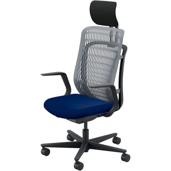 【組立設置込】内田洋行 AJチェア ヘッドレスト付 ハンガー無 固定肘 ナイロンキャスター Sグレー×ダークブルー 53726115 1脚(直送品)