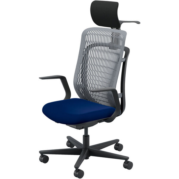 【組立設置込】内田洋行 AJチェア ヘッドレスト付 ハンガー付 固定肘 ナイロンキャスター Sグレー×ダークブルー 53726125 1脚(直送品)
