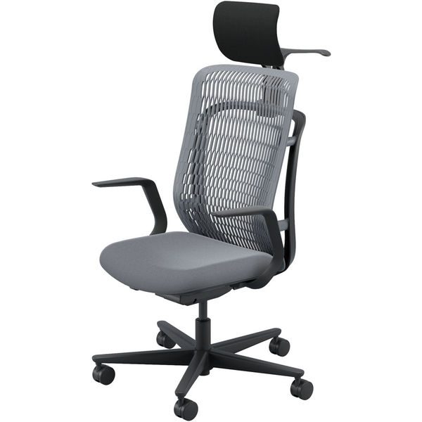 【組立設置込】内田洋行 AJチェア ヘッドレスト付 ハンガー付 固定肘 ナイロンキャスター Sグレー×ライトグレー 53726122 1脚(直送品)