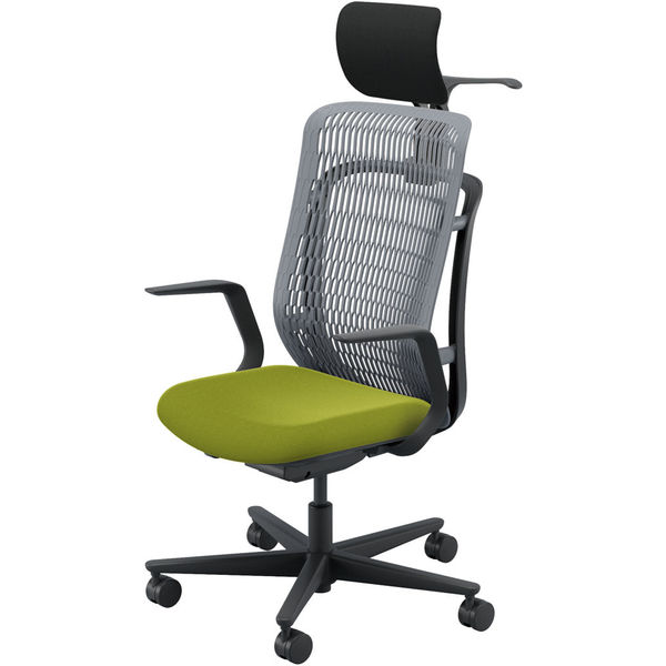 【組立設置込】内田洋行 AJチェア ヘッドレスト付 ハンガー付 固定肘 ナイロンキャスター Sグレー×リーフグリーン 53726126 1脚(直送品)