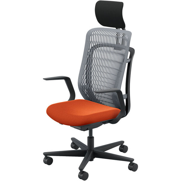 【組立設置込】内田洋行 AJチェア ヘッドレスト付 ハンガー無 固定肘 ウレタンキャスター Sグレー×テラコッタ 53726133 1脚(直送品)