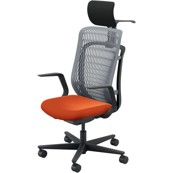 【組立設置込】内田洋行 AJチェア ヘッドレスト付 ハンガー付 固定肘 ウレタンキャスター Sグレー×テラコッタ 53726143 1脚(直送品)