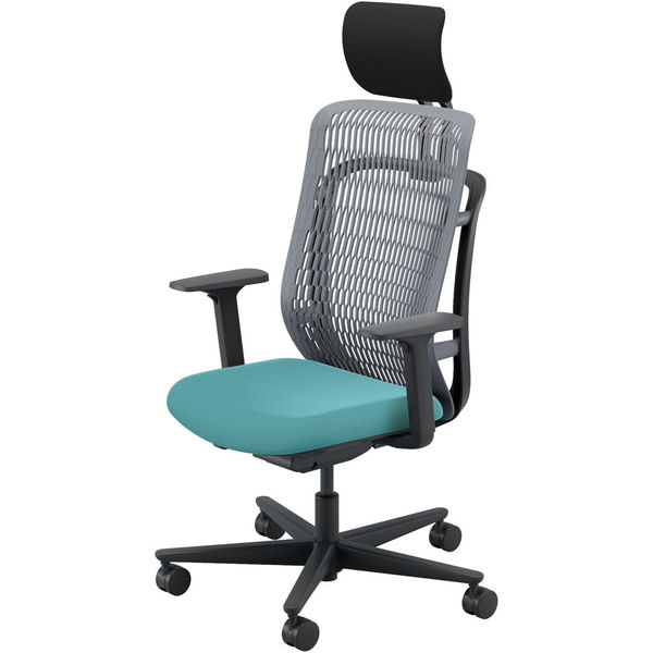 【組立設置込】内田洋行 AJチェア ヘッドレスト付 ハンガー無 可動肘 ナイロンキャスター Sグレー×アクアブルー 53726317 1脚(直送品)