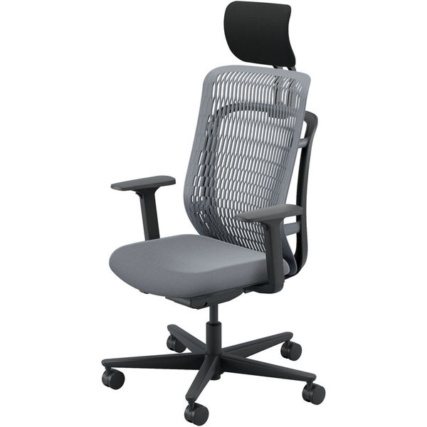 【組立設置込】内田洋行 AJチェア ヘッドレスト付 ハンガー無 可動肘 ウレタンキャスター Sグレー×ライトグレー 53726332 1脚(直送品)