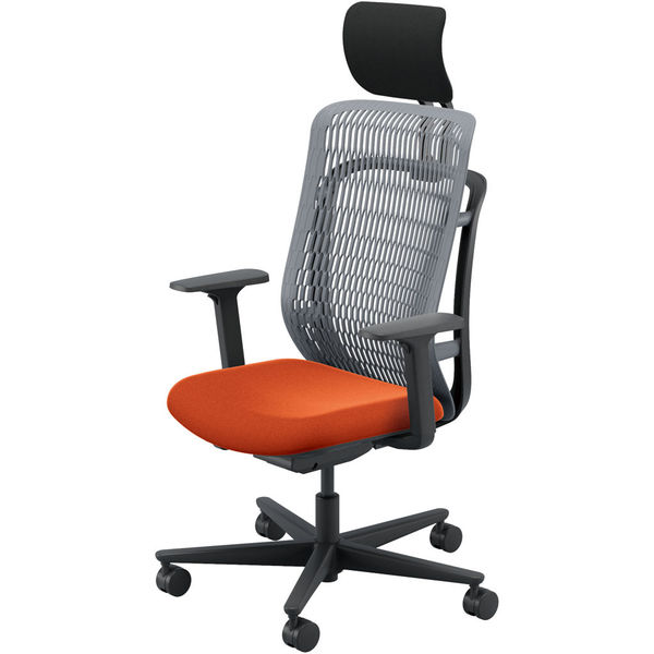 【組立設置込】内田洋行 AJチェア ヘッドレスト付 ハンガー無 可動肘 ウレタンキャスター Sグレー×テラコッタ 53726333 1脚(直送品)
