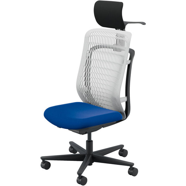 【組立設置込】内田洋行 AJチェア ヘッドレスト付 ハンガー付 肘無し ナイロンキャスター Aグレー×ブルー 53727024 1脚(直送品)