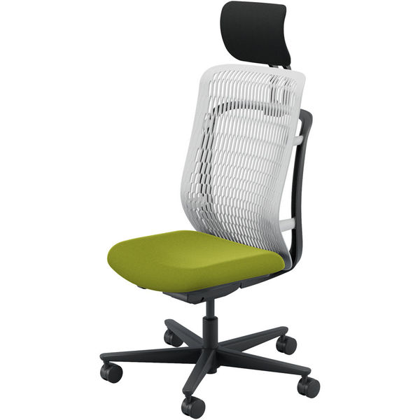 【組立設置込】内田洋行 AJチェア ヘッドレスト付 ハンガー無 肘無し ウレタンキャスター Aグレー×リーフグリーン 53727036 1脚(直送品)