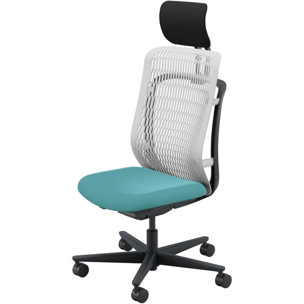 【組立設置込】内田洋行 AJチェア ヘッドレスト付 ハンガー無 肘無し ウレタンキャスター Aグレー×アクアブルー 53727037 1脚(直送品)