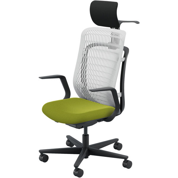 【組立設置込】内田洋行 AJチェア ヘッドレスト付 ハンガー付 固定肘 ウレタンキャスター Aグレー×リーフグリーン 53727146 1脚(直送品)