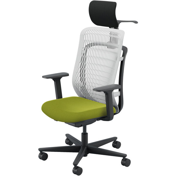 【組立設置込】内田洋行 AJチェア ヘッドレスト付 ハンガー付 可動肘 ウレタンキャスター Aグレー×リーフグリーン 53727346 1脚(直送品)