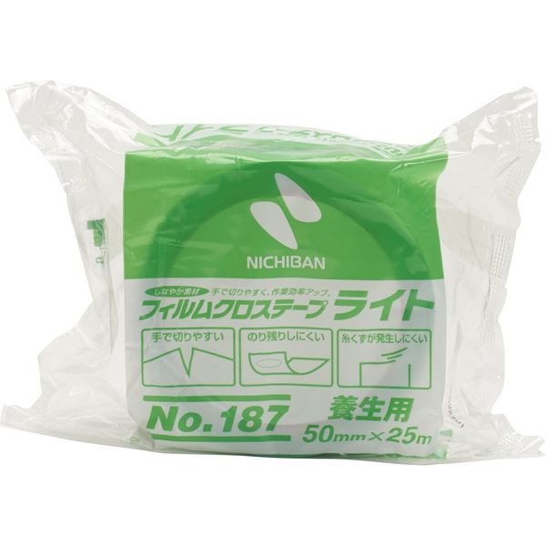 ニチバン 日本製 フィルムクロステープライト 養生用 グリーン(緑) 50mm×25m 187-50 3巻