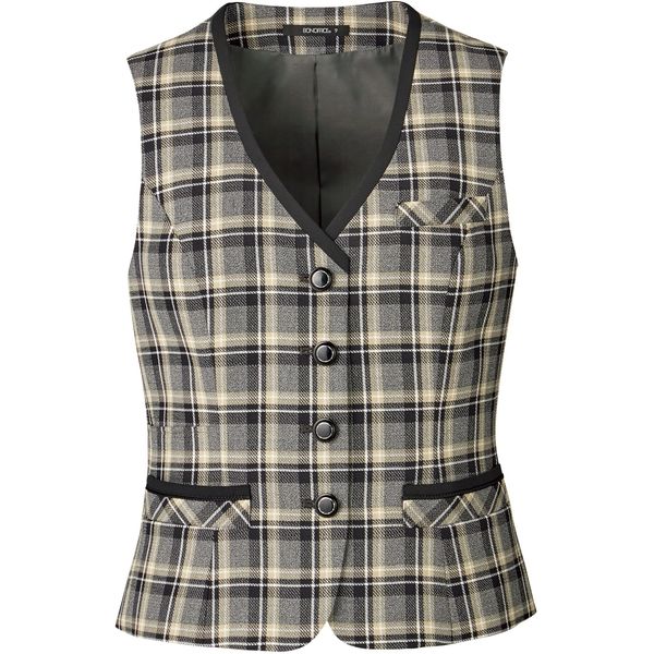 4つ釦《ベスト》モノトーンベース、適度なハリとストレッチ性のツイード調。差し色を効かせたチェック柄