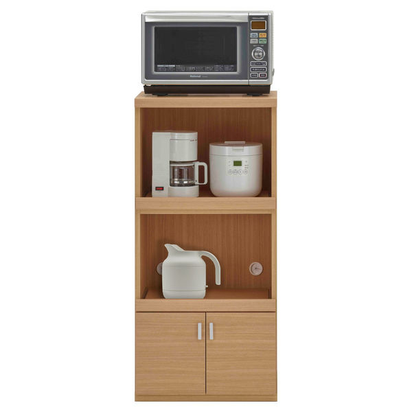 | 商品の特徴 | アルミ製のコンパクトな取手がアクセントになったスッキリとしたデザインのレンジ台です。家電収納にも対応したオープンスペース付き。引き出し、スライド天板には奥まで使えるフルスライドレールを使用。完成品でのお届けです。収納家具を得意とする国内メーカーが、企画から製造まで行っています。F☆☆☆☆(エフフォースター)。日本製。 | ||