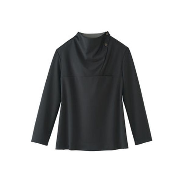 | 商品の特徴 | 衿元のドレープでシンプルながらも大人っぽさを演出してくれる9分袖プルオーバーです。チラッと見える衿元内側のチェック柄がさりげないオシャレポイント。抗菌・消臭・防汚・抗ウィルス加工のTiotioプレミアム付きなので、安心して毎日のお仕事に取り組めます。 | ||
