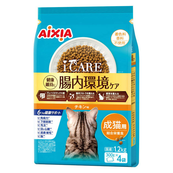 i CARE(アイケア)腸内環境ケア 成猫用 チキン味 国産 1.2kg(300g×4袋)1袋 アイシア キャットフード