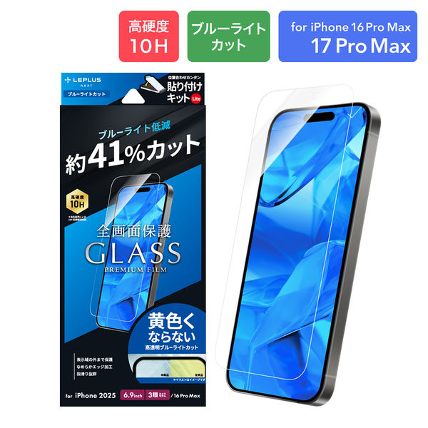 iPhone 17 Pro Max/iPhone 16 Pro Max ガラスフィルム ブルーライトカット 指紋防止 全画面保護(直送品)
