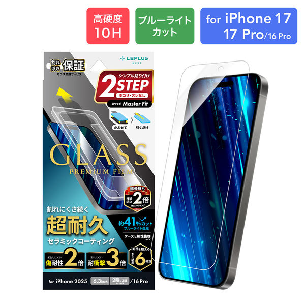 iPhone 17/iPhone 17 Pro/iPhone 16 Pro ガラスフィルムセラミックコーティング ブルーライトカット 耐衝撃(直送品)